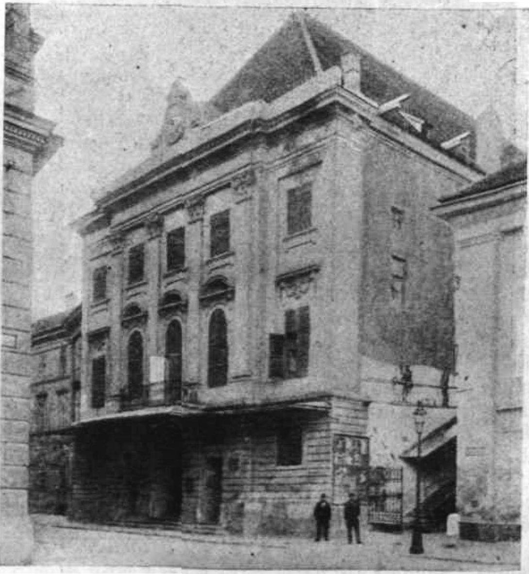A mai épület helyén a középkorban ferences templom állt, majd a török hódoltság alatt Basa-dzsámiként működött. Az 1686-os ostrom során a közelében lévő lőporos torony felrobbanása rombadöntötte. Helyén a karmeliták 1725-1736 között építették fel templomukat és kolostorukat, a ma is álló épületet. A rend II. József általi, 1784-ben történt feloszlatása után egy darabig raktárként működött. Majd II. József Kempelen Farkast bízta meg az épület színházzá alakításával. (Az 1778-ban megjelent Schaffrath metszet a még tornyos templom hátsó – Dunára néző bástya felőli frontját mutatja, a vele egybeépített karmelita kolostorral.) Az 1787-es átalakítás során bontották le a tornyot, és alakították ki a copf homlokzatot. A színház 1787 október 16-án nyílt meg. Az első magyar színielődás 1790-ben, a Beethoven közreműködésével rendezett hangverseny 1800-ban volt itt. Színpadán játszott Megyeri, Déryné, Szigligeti, Laborfalvy Róza stb.