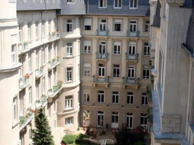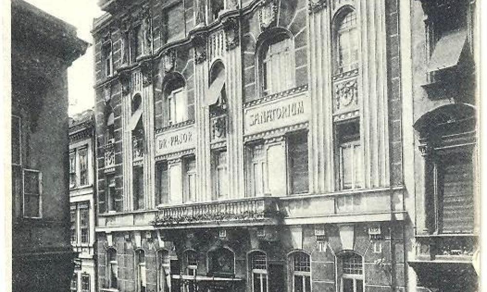 Dr. Pajor Sándor (1861-1935) 1889-től Budapesten a Szentkirályi utcában alapította meg vízgyógyintézetét, amit hamarosan kibővítetett a párhuzamos Vas utca felé. 1908-ban itt épült fel Hültl Dezső építész tervei szerint a Pajor Szanatórium és Vízgyógyintézet (Vas utca 17.). 1913-ban a Szentkirály utcai szárny átépítésével jött létre az egységes gyógyintézet. Az épület lépcsőházi opálüvegablakainak festett díszüvegezését Róth Miksa, a hatalmas színes kerámia pálmatartó kaspókat és díszburkolatokat a Zsolnay gyár készítette. A luxus színvonalú bútorzat Thék Endre gyárából került ki.