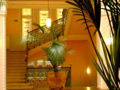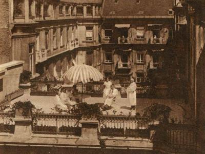 Az alagsor és földszint magában foglalja a gyógyeszközök végnélküli sorát: elektromosság, röntgen, fény, villany, szénsavas, gyógyszeres fürdők, gépgyógyászat, impozáns vizgyógytermek minden elképzelhető gyógyeljárásokkal stb., a pneumatikus és inhaláló-szobában látunk egy kerek vastornyot, díszes inhaláló-fülkéket és asztalokat, melyek Reichenhall és Ems gyógytényezőit itt a fővárosban teszik megközelithetővé. Pöstyén csodás iszapja is itt talál alkalmazást külön gyógyhelyiségekben. ----- Földalatti gépezetek látják el a ház minden szobáját fütéssel és meleg vizzel, az inhalatoriumot friss levegővel, a hütőhelyiségeket hideg levegővel és az egész ház részére való porszivókkal. ------ Mindhárom emeleten vannak betegszobák, összesen 70, melyek tágasak és világosak, virágdiszitéses erkélyekkel, csinnal és a tisztántarthatásra legnagyobb figyelemmel berendezve. Tágas csarnokok, széles folyosók, ebédlő, társalgó a szórakozás és társas érintkezés czéljaira kényelemmel és izléssel berendezve. ------ Az épület tetején elterülő 400 négyszögméternyi lapos terrasz szolgál a nap és légfürdők czéljaira, a falakon vizcsapok és zuhanyok, a betegek liften jutnak ide esetleg ágyastól s a budai hegyekre s Budapest háztengerére nyiló impozáns kilátást az üdülő sétálók is élvezhetik.