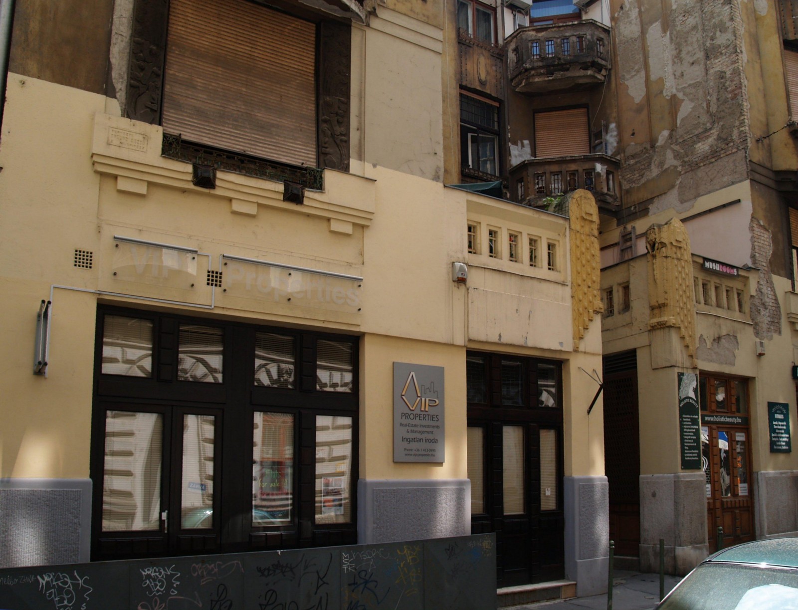 Mindkét ház földszint fölötti része francia udvaros, a lakások minél jobb megvilágításának biztosítása érdekében. A kapuk a beépítési vonaltól visszahúzottak, így azoktól jobbra-balra is üzletbejáratok lehettek. A két bérház magyaros-szecessziós díszítése és ornamentikája csak részleteiben tér el. A kapualj díszítése szecessziós stukkó, kék-zöld mázas kerámia. Az udvar függőfolyosójának lemeze acélszerkezetű, a korlát szecessziós kovácsoltvas. Az udvar teljes egészében raktár célra alápincézett, s a raktár-megvilágítás érdekében az udvarburkolat üveg- és klinker-tégla.