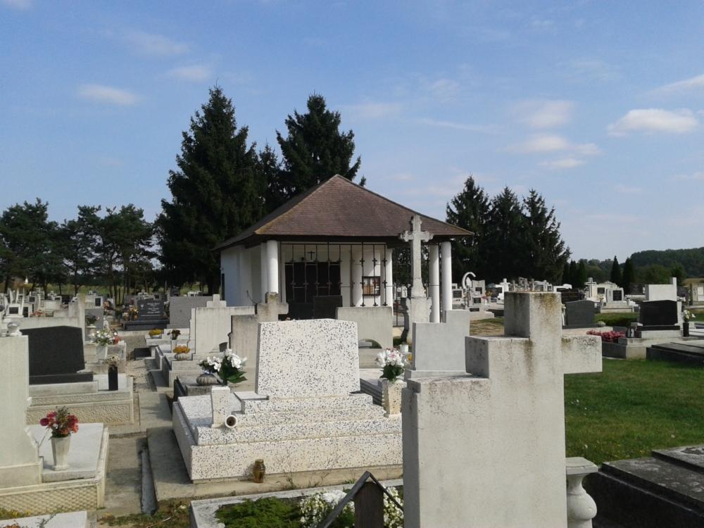 Az 1972-ben megnyitott püspökmolnári új köztemető képe a ravatalozóval.