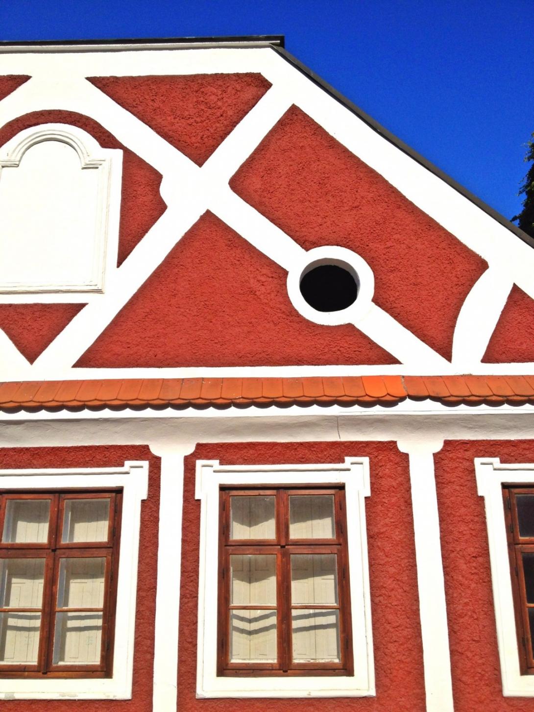 Tiszttartói háznak épült, 1770 körül. Homlokzatai höbörcsös vakolatúak, simított vakolat architektúrával. Az utcai homlokzatát egykor freskók díszítették, ma már csak a keretét láthatjuk.